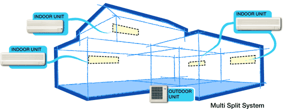 A Multi-Split system can air condition from two to nine rooms using only one outdoor unit, and allows individual control of the air conditioning in each room. This not only optimises comfort but saves on running costs as wastage is eliminated by only air conditioning rooms as and when required.
